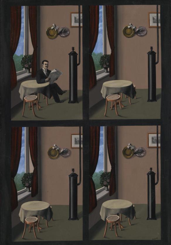 Image Credit: Paul Fürst, Der Doctor Schnabel von Rom, 1656 | André Breton, Cadavre Exquis, c.1930 | René Magritte, Man with a Newspaper, 1928.
