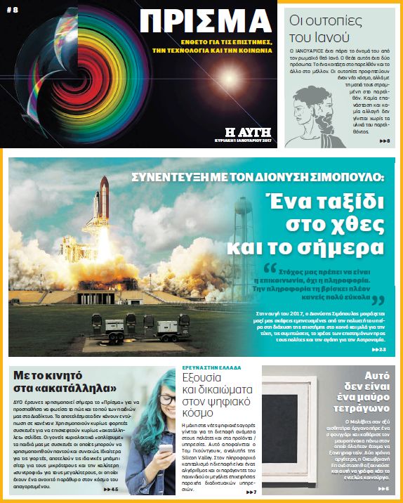 Το ΠΡΙΣΜΑ είναι το ένθετο για τις Επιστήμες, την Τεχνολογία και την Κοινωνία, που κυκλοφορεί με την εφημερίδα η Αυγή κάθε 15 ημέρες.
