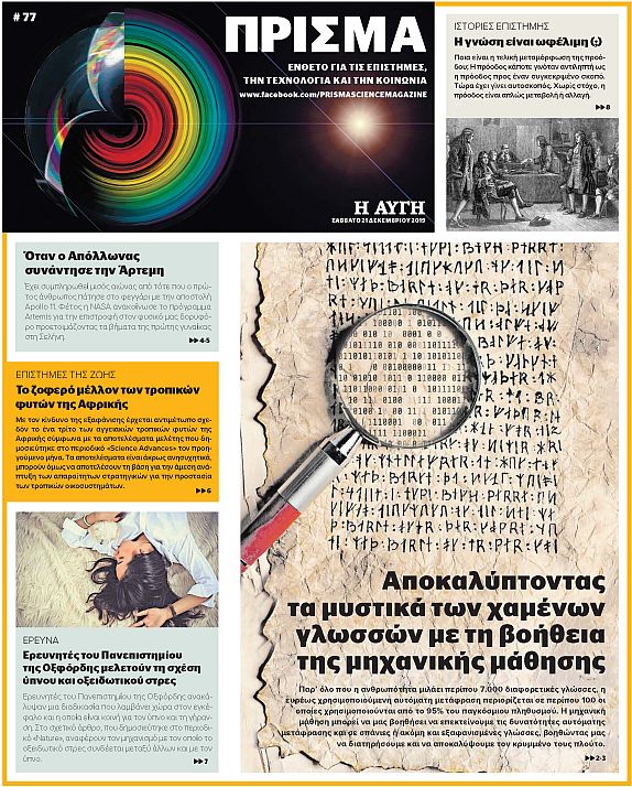 Το ΠΡΙΣΜΑ είναι το ένθετο για τις Επιστήμες, την Τεχνολογία και την Κοινωνία, που κυκλοφορεί με την εφημερίδα η Αυγή κάθε 15 ημέρες.